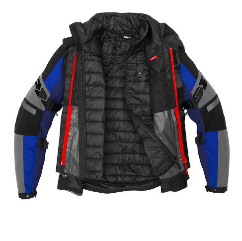 Questa giacca antipioggia Spidi è composta da tre strati (guscio esterno, termico e impermeabile) utilizzabili sia singolarmente che agganciati tra loro per una protezione più completa. Il guscio esterno integra il tessuto a 3 strati Extra Tenax alla morbidezza del poliestere nelle aree dove è necessario maggiore comfort. La dotazione standard di sicurezza include protettori removibili sulle spalle e Warrior Lite di Livello 2 sui gomiti (i protettori frontale e dorsale della serie Warrior di Livello 1 o 2 sono optional). Gli strati interni sono composti da uno strato termico Thermo Liner e da una giacca impermeabile traspirante Rain Chest con membrana H2Out®. Le zone reflex assicurano la visibilità notturna mentre le regolazioni multiple includono coulisse sul fondo, restringimenti in Velcro® a 8 punti e sistema di chiusura del colletto E.S.T.