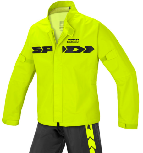 La tuta antipioggia Spidi Sport Rain Kit assicura massima protezione contro pioggia e intemperie su qualsiasi percorso, anche in gara, ed è composta da una combinazione di giacca e pantaloni versatile e comoda da trasportare grazie al pratico sacchetto salvaspazio. La colorazione giallo fluo ad alta visibilità della giacca ti aiuterà ad essere sempre visibile, anche in caso di visibilità ridotta o in condizioni critiche di guida. Per garantire una vestibilità comoda e adattabile, è dotata di coulisse regolabile e tiretti per ridurre il volume delle maniche e sul petto. Il tessuto laminato a 2 strati è impermeabile, antivento, e privo di PVC. Presenta anche aree in materiale riflettente per facilitare il rilevamento di notte.