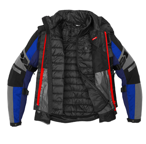 La giacca moto Spidi 4 Season è un capo versatile e utilizzabile in qualsiasi stagione grazie ai diversi strati che lo compongono. Il guscio esterno integra il tessuto a tre strati Extra Tenax (con alta resistenza allo strappo e al taglio) con la morbidezza del poliestere nelle aree dove è richiesto maggiore comfort. I pannelli di rete a scomparsa assicurano una perfetta ventilazione nelle diverse posizioni di guida. Completano l'equipaggiamento due giacche interne della serie Step-In Wear: uno strato termico Thermo Liner foderato e uno impermeabile traspirante Rain Chest, costruito con membrana H2Out® per la dispersione dell’umidità. I tre strati (guscio esterno, termico e impermeabile) sono agganciabili tra loro oppure utilizzabili singolarmente.