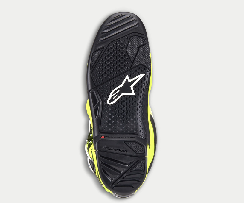 La struttura dello stivale sotto l'indicatore del limite di usura è circondata da uno strato di Kevlar che mantiene la struttura e l'integrità dello stivale proteggendolo allo stesso tempo.