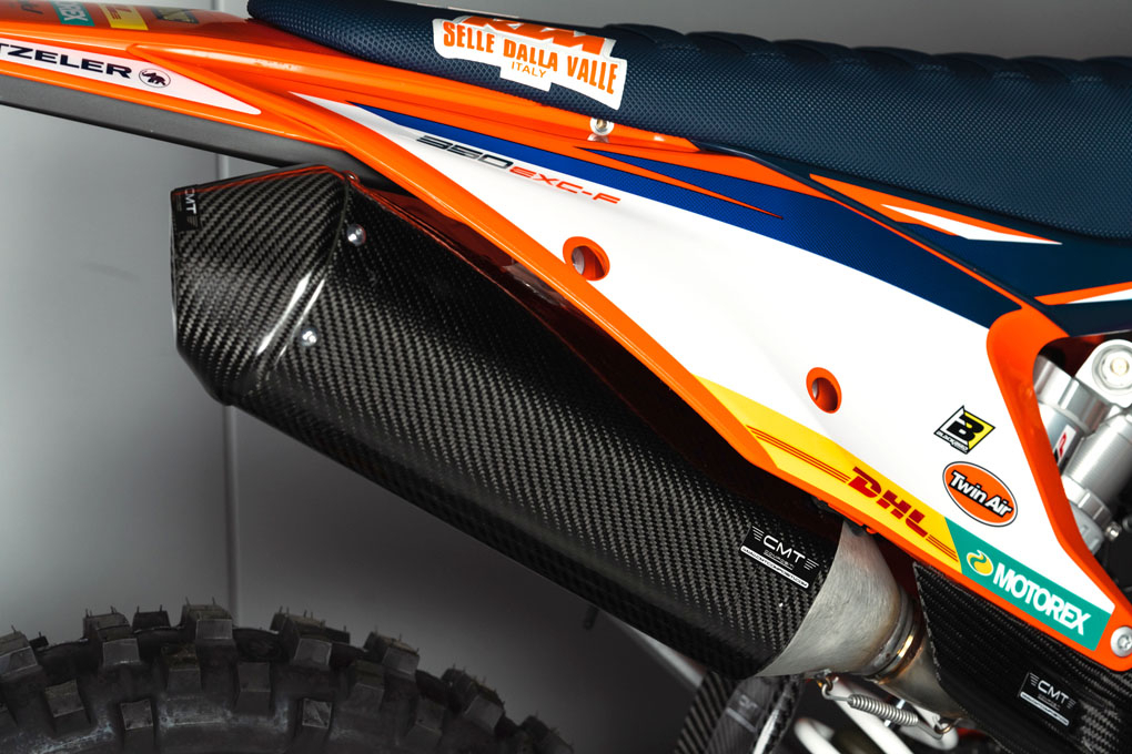 Paracalore realizzato in carbonio prepreg. per i modelli KTM EXC-F 250 2024 - 2025 e lavorato tramite il processo di lavorazione in autoclave.