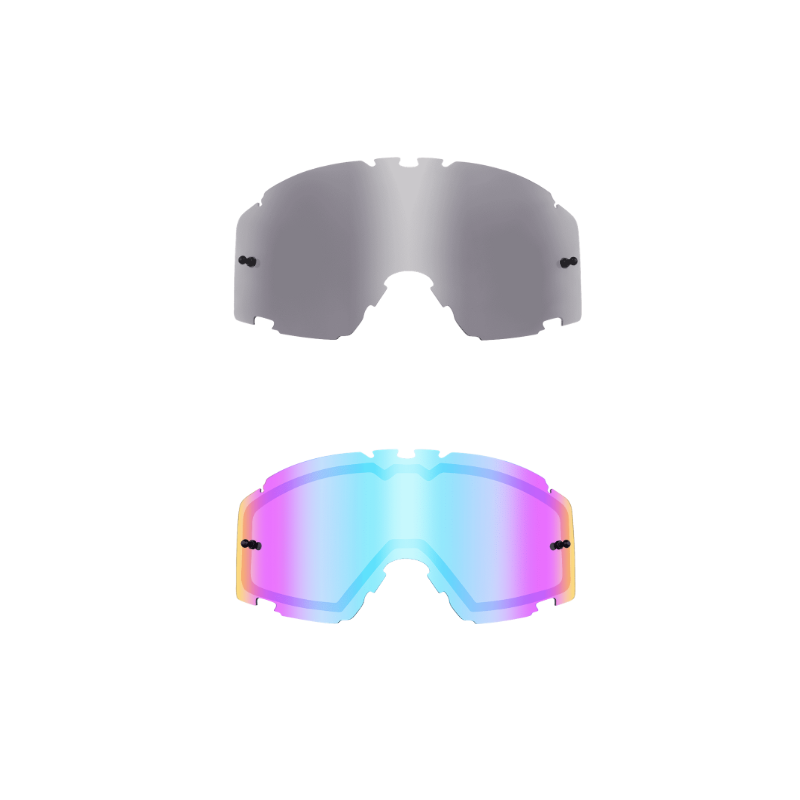 Lente di ricambio singola e doppia disponibile nel colore trasparente, grigio, blu radium e rosso radium. Il colore argento a specchio è disponibile solo per la lente di ricambio singola