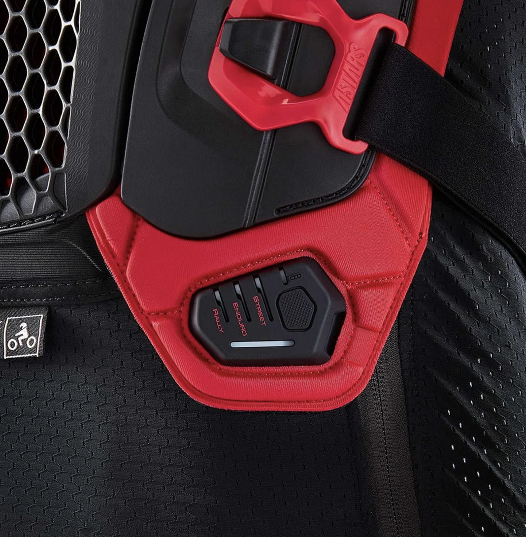 Il Sistema Tech-Air® Off-Road, con l’airbag attivo gonfiato, offre una protezione completa CE di Livello 1 per il petto e la schiena, oltre a una copertura per spalle, collo e clavicole in caso di incidente. Il Sistema è integrato con una giacca Alpinestars Off-Road Protection, dotata di una protezione passiva di Livello 1 per la schiena e gli arti, di una protezione integrata sulle braccia e di una protezione passiva di Livello 2 per il torace, per offrire ai motociclisti una maggiore protezione contro rocce, detriti e altri ostacoli con cui possono entrare in contatto sul sentiero. Progettato per affrontare qualsiasi terreno, il Sistema è dotato di tre modalità di guida: ENDURO, RALLY e STREET, che lo rendono la scelta perfetta per ogni tipo di guida su strada e fuoristrada