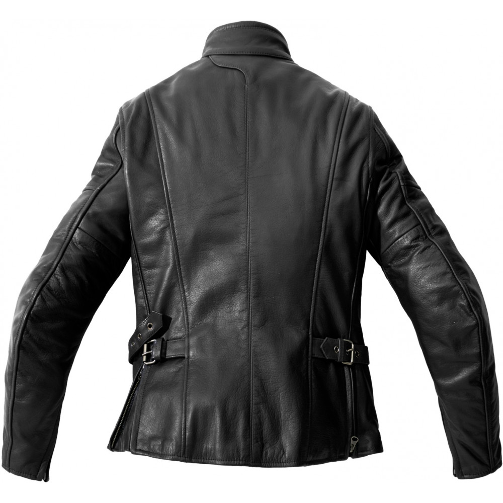 Giacca in pelle SPIDI Mack Lady, 4 stagioni per uso touring, in versione donna realizzata in pelle di bufalo, con certificazione EN 17092-2: 2020 Classe AA e protezioni Warrior Lite rimovibili - certificate secondo EN1621-1: 2012 - su spalle e gomiti. La tasca posteriore puòospitare le protezioni posteriori della serie Warrior (livello 1 o 2) non incluse.