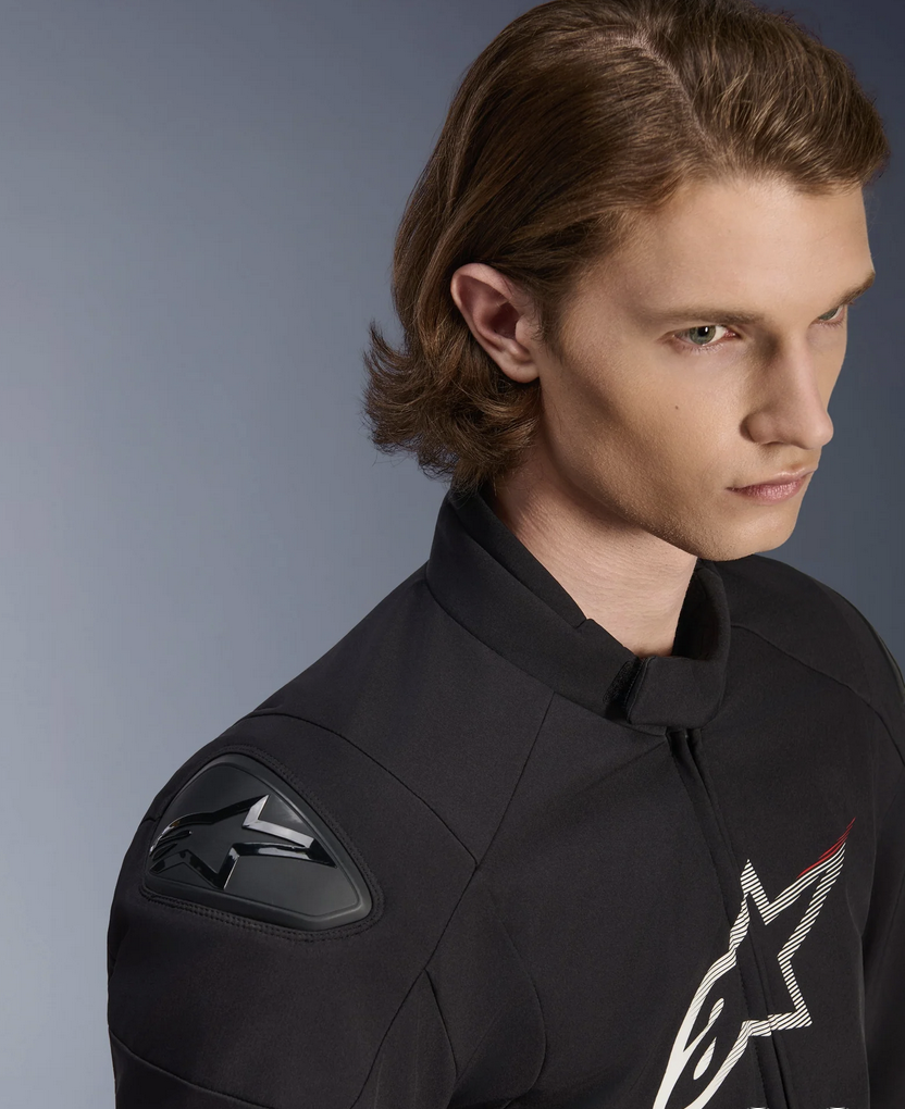 - Inserti di pannelli elasticizzati posizionati strategicamente sono stati progettati per ospitare il sistema di airbag Alpinestars, consentendo l'espansione quando l'airbag si gonfia, ma offrendo anche un elevato livello di prestazioni anatomiche e una vestibilità superiore quando si guida senza il sistema montato.