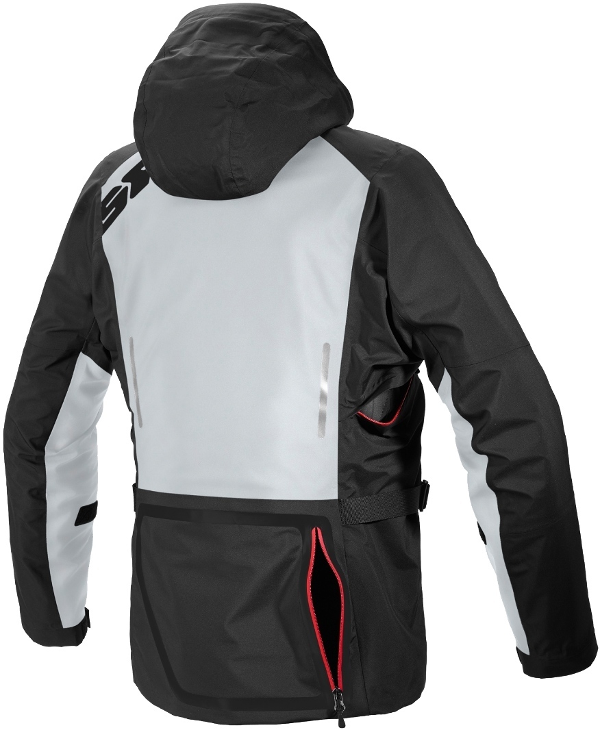 Hard Shell. Tutta la tecnologia H2OUT® sul guscio esterno impermeabile e traspirante, che rende la giacca impermeabile e traspirante, lascia passare l'aria quando le prese d'aria dirette sono aperte. il tessuto Toray® Dermizax® garantisce il massimo dei valori di traspirazione e impermeabilità (20K/20K) con doti estreme di resistenza e durabilità. Le tasche inferiori sono impermeabili, le prese d'aria posizionate lungo il torace garantiscono un flusso d'aria diretto mentre le zono reflex garantiscono una visibilità passiva notturna a 360 gradi. Il cappuccio estraibile si rivela utile anche quando la giacca esterna viene utilizzata come una capo antipioggia da outdoor.