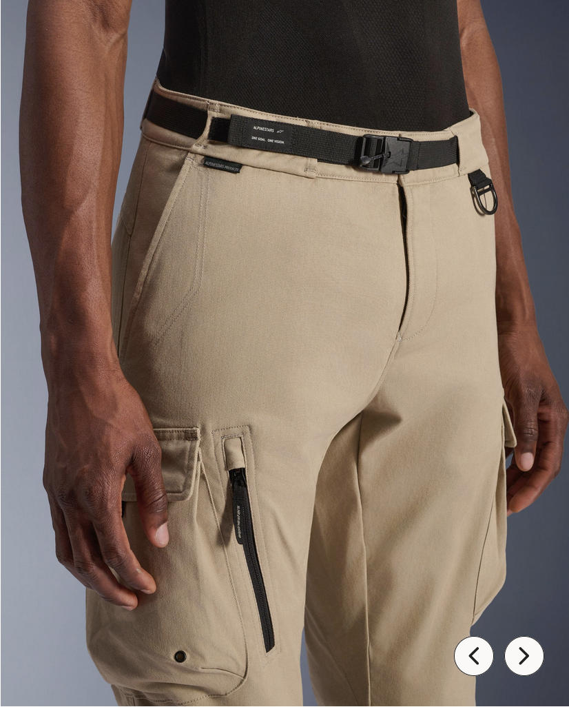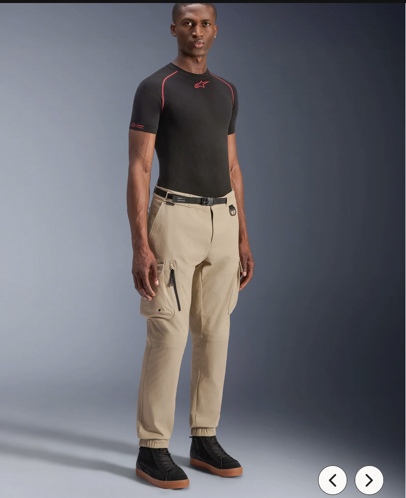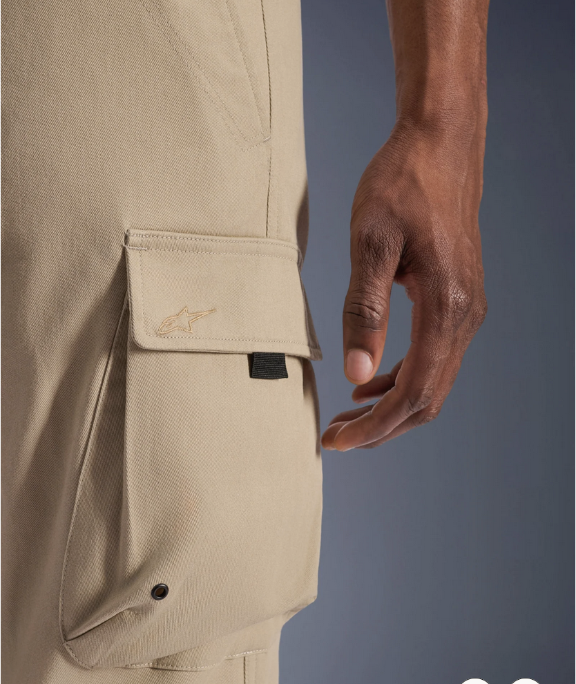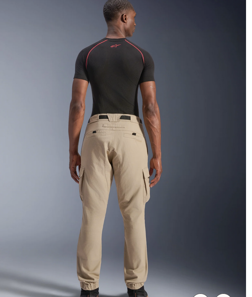- Finiture Moderne: Cuciture tono su tono sottili, cuciture interne con aspetto selvedge e fibbia, bottoni a pressione e tirazip marchiati Alpinestars conferiscono ai pantaloni un'estetica raffinata e minimalista.