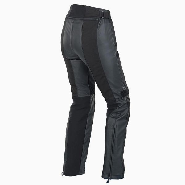 -Uso: Sport touring -Materiale esterno: Pelle e tessuto Nylon-Impermeabilità: 50% -Protezioni: CE removibili ginocchio-tibia fianchi -Interno: Fodera traforata removibile-Inserti elasticizzati: Cavallo Ginocchia Gambe-Regolazioni: Caviglie Vita-Zip collegamento giacca: Sì