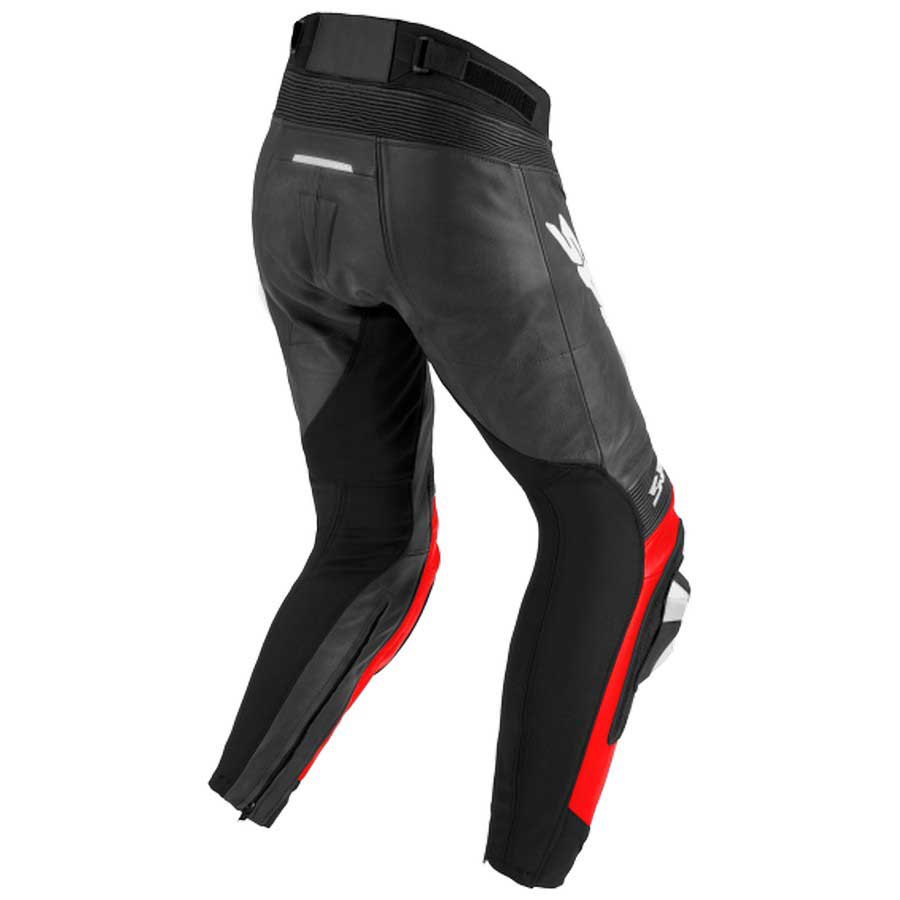 I pantaloni SPIDI RR PRO 2 sono certificati secondo l'ultimo standard di sicurezza prEN 17092-2: 2017, ed includono le protezioni Warrior Lite certificate En 1621-1: 2012. Al fine di garantire una perfetta vestibilità, i pantaloni RR PRO 2 hanno un sistema di regolazione micrometrico in vita, pannelli elasticizzati nella parte superiore del ginocchio ed un fondo progettato per adattarsi perfettamente agli stivali racing. Come ci si aspetta da qualsiasi pantalone sportivo ad alte prestazioni, RR PRO 2 hanno slider regolabili e removibili sul ginocchio, impreziositi dal sistema M.S.C. Micrometric Slider Control. Per aumentare il livello di protettività, è presente una cerniera di fissaggio tra giacca e pantalone, mentre la struttura principale è in pelle con uno spessore da 1,1 mm a 1,3 mm. Pannelli in Flex Tenax sono posizionati su zone con movimenti frequenti, quali le ginocchia, ed all’interno è presente una fodera fissa.