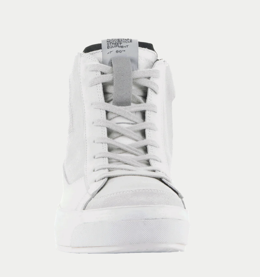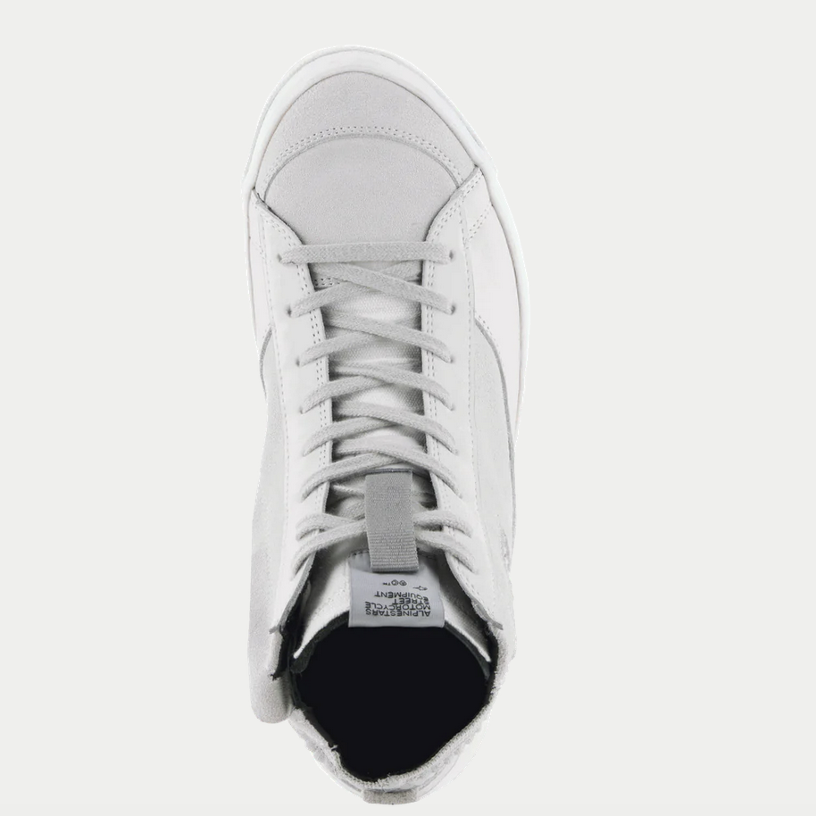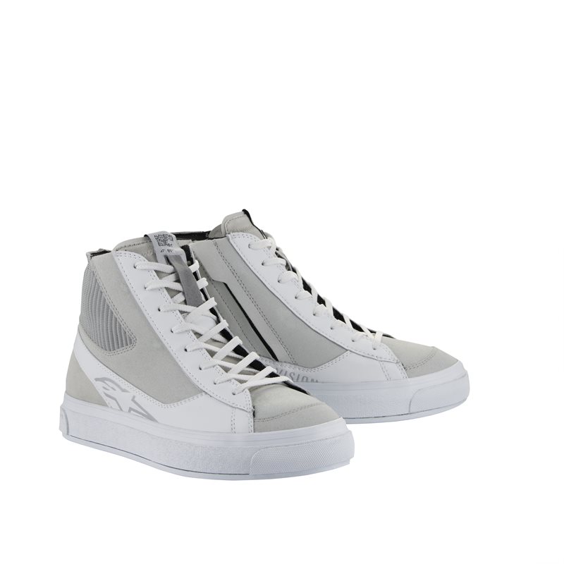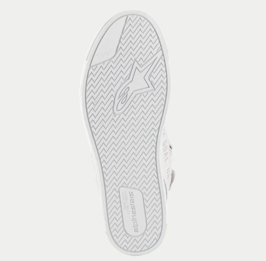Scarpe Alpinestars Stella Stated Podium Lady bianche/grigie . Sneakers urbane da donna dal design specifico per adattarsi perfettamente alla forma femminile del piede. Realizzato in pelle Nabuk e tessuto Canvas che offre grande comfort. Dispone di protezioni nella zona delle dita e della caviglia. La parte posteriore della caviglia è imbottita per garantire maggiore comfort. Sistema TPF che dona maggiore flessibilità alla scarpa. Soletta interna OrthoLite® imbottita, intersuola a doppio strato con plateau di circa 8 mm e suola in gomma antiscivolo con grip adeguato. Chiusura con lacci e cerniera laterale.
