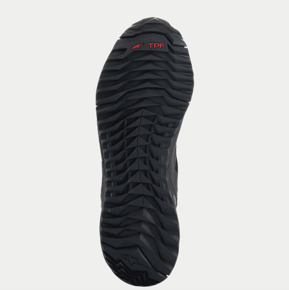 - Alpinestars Transversal Protection Frame (TPF) protegge il piede fornendo il supporto necessario sul poggiapiedi senza compromettere la flessione del piede anteriore per un comfort di camminata superiore