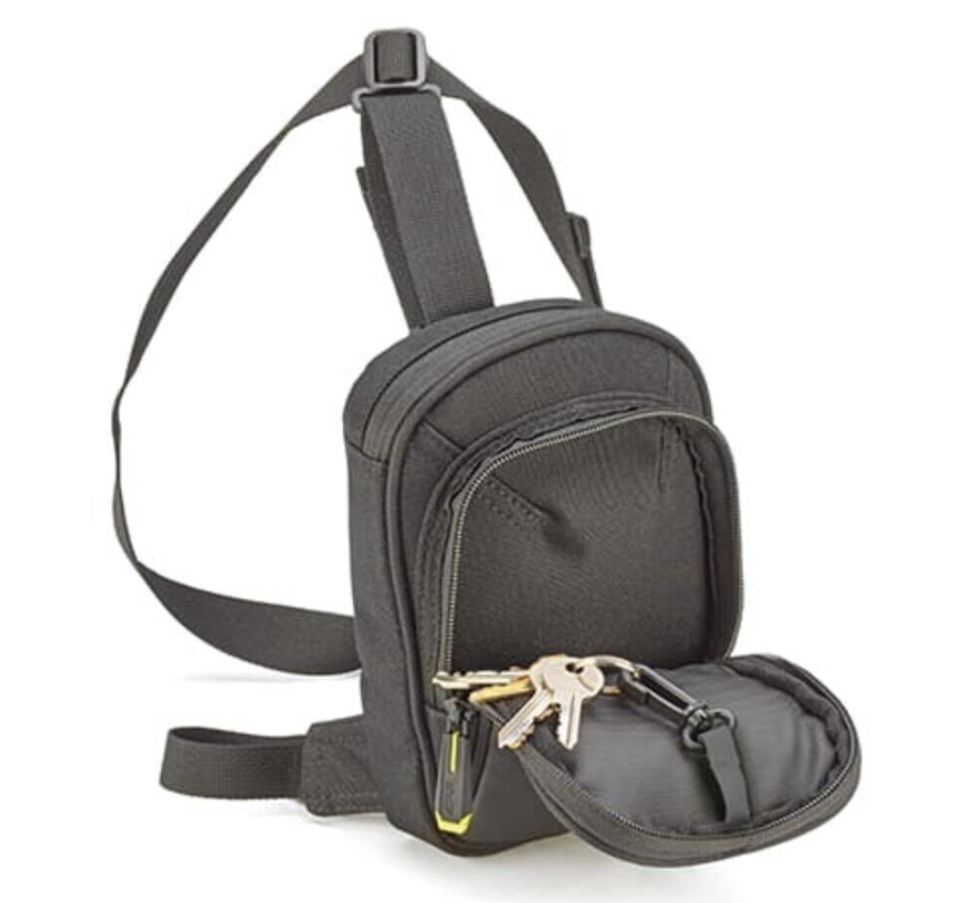 Grazie alla cintura da vita staccabile il borsello può essere agganciato anche direttamente alla cintura o al passante del pantalone