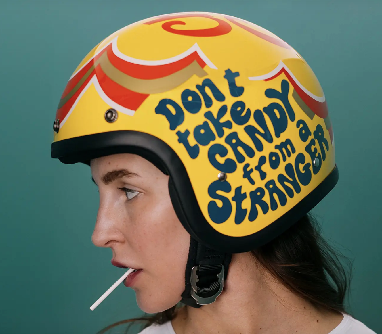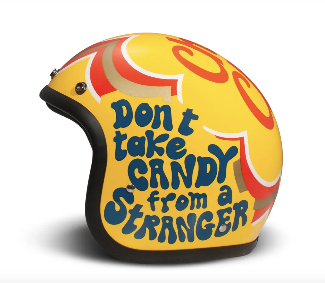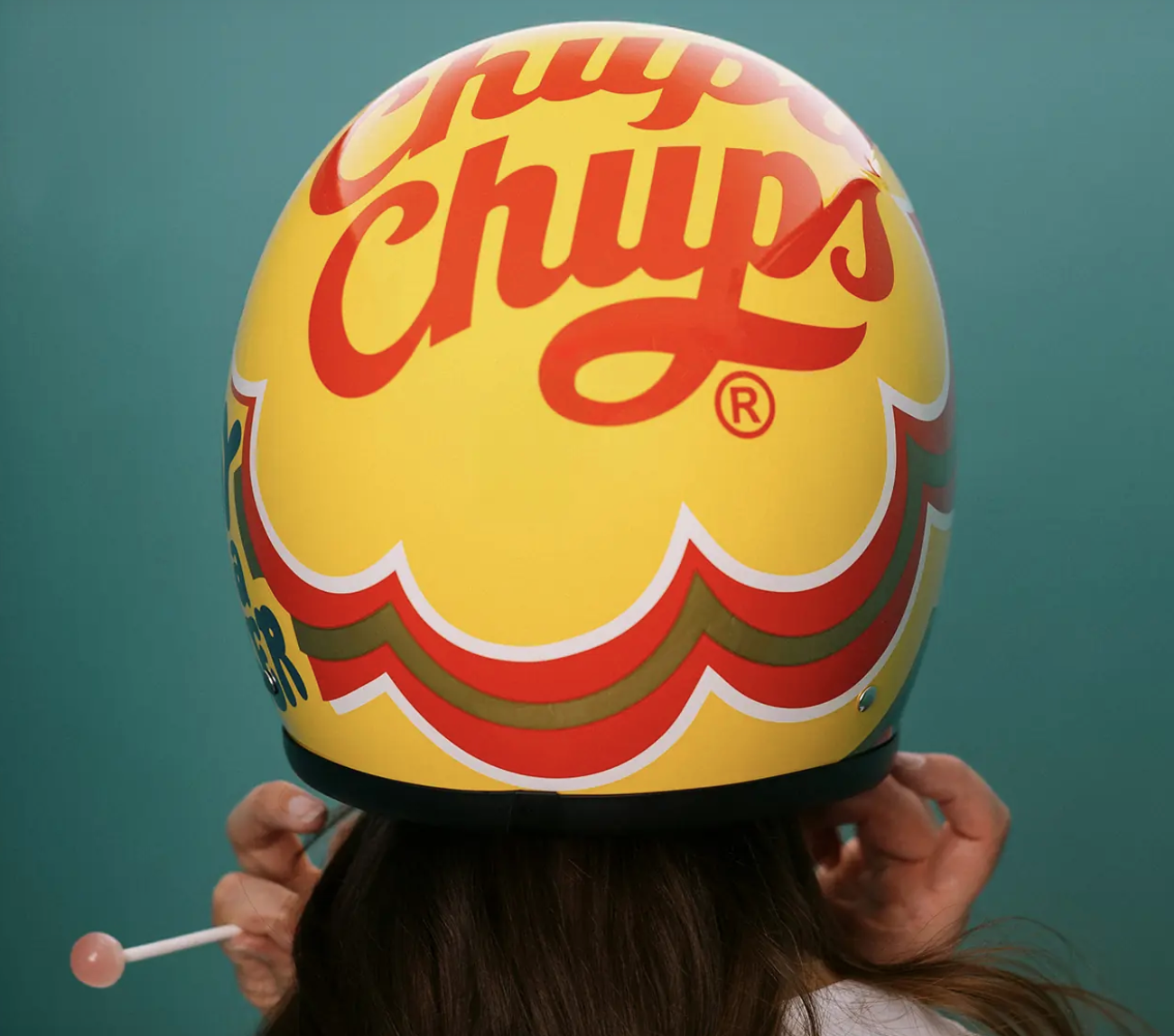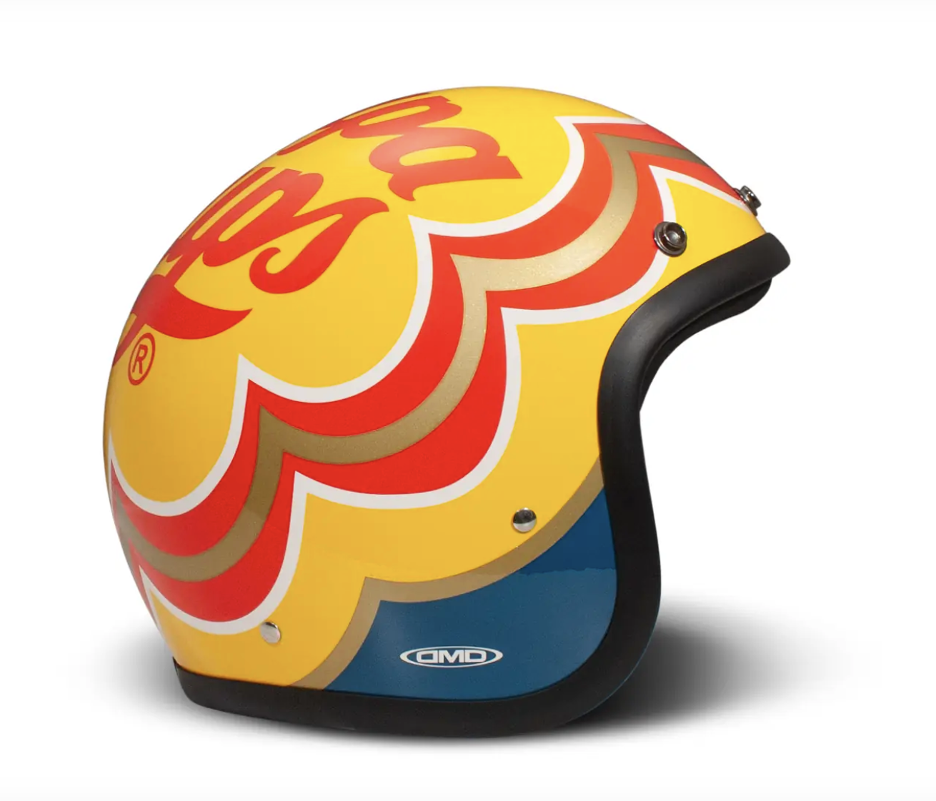 Questa grafica realizzata sul casco Jet Retro nasce dalla collaborazione tra DMD e lo storico brand Chupa Chups. Un casco iconico che fonde la creatività e artigianalità del mondo DMD con lo spirito divertente e giocoso di Chupa Chups. Lasciati conquistare dalla particolarità di questo modello.