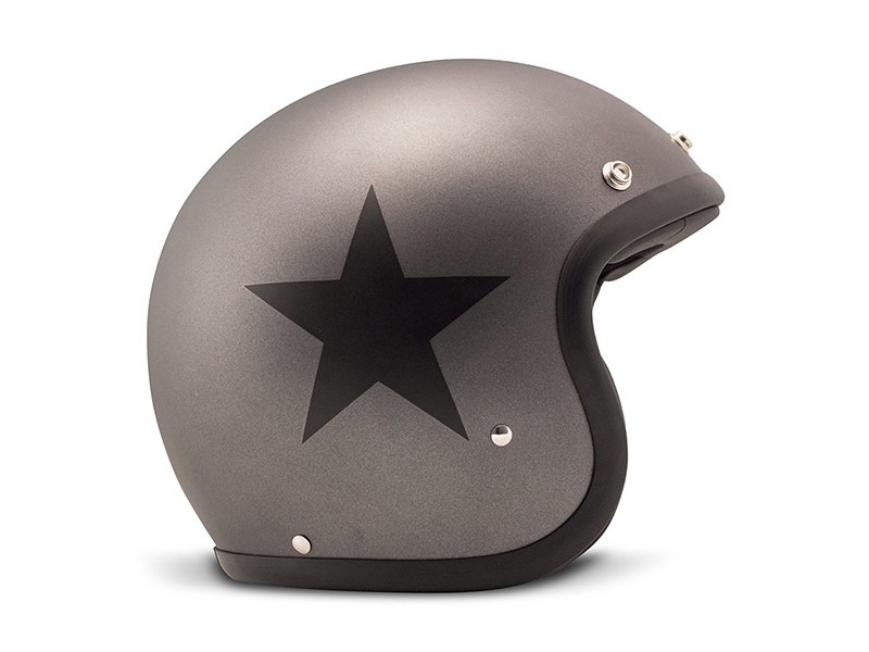 Il casco jet Retro Star Grey prende il nome dal suo colore. La semplice grafica, una stella nera su base grigio opaco, richiama gli storici modelli Stars and Stripes degli anni Settanta.