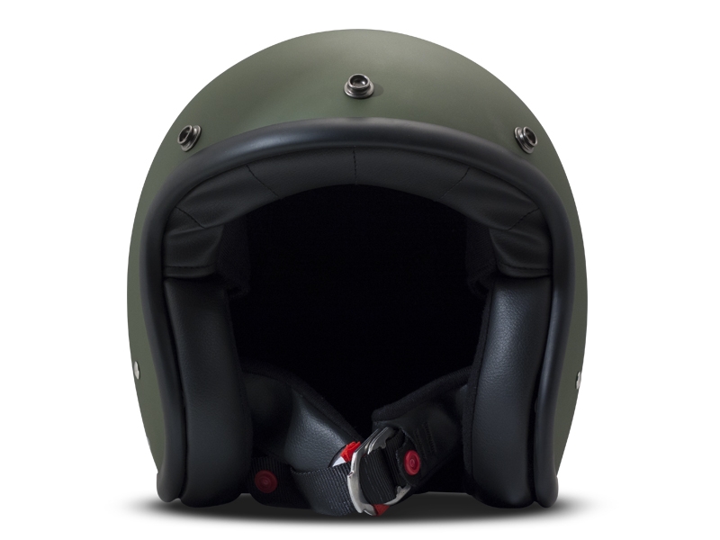 Il casco jet Retro Matt Green fa parte della gamma dei monocolore e si presenta con una finitura verde opaca.