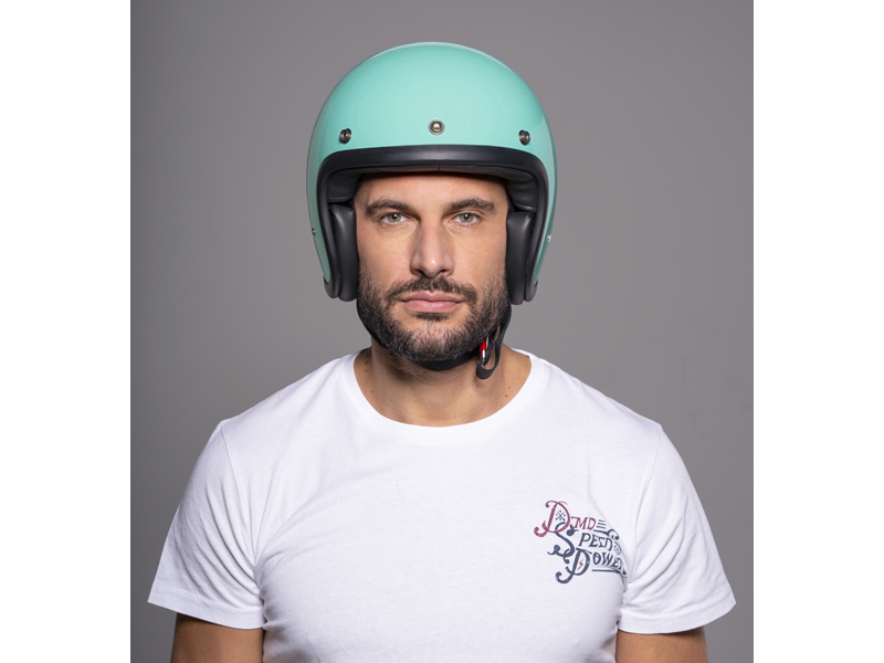 Il casco Jet Retro Dmd è interamente realizzato in fibra di vetro.