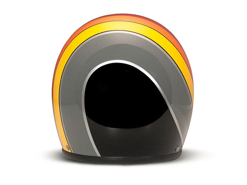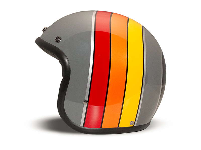 Il casco Jet Retro Curve è caratterizzato da una base grigia lucida con linee di colore tipiche dei mitici anni Ottanta.