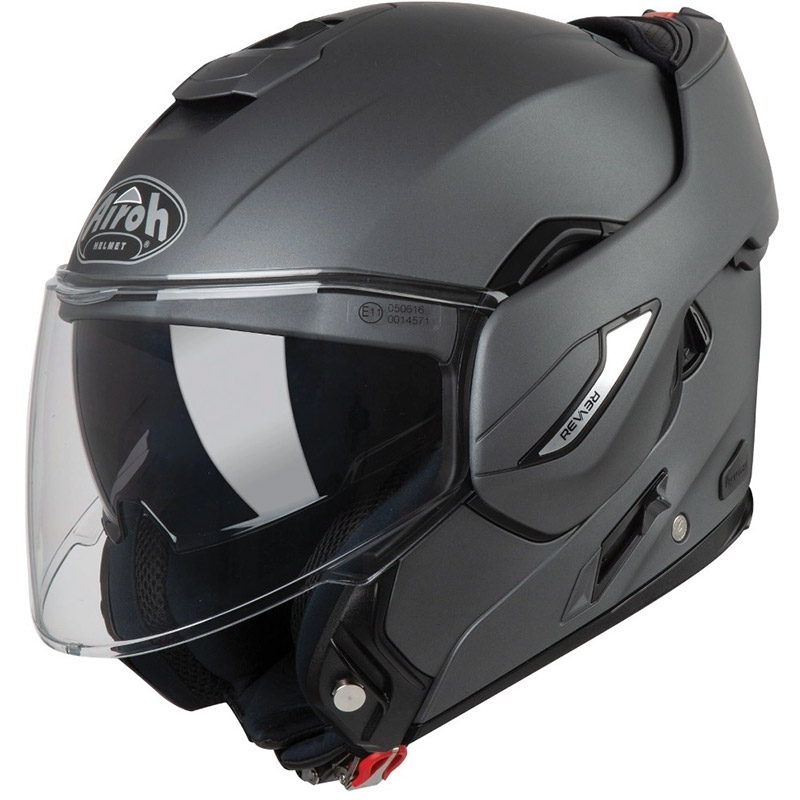 Sempre pronto per nuove avventure con REV 19, il casco Flip-Up per eccellenza di Airoh Helmet® che combina la versione integrale e la versione jet in un unico modello dinamico e moderno, capace di adattarsi ad ogni condizione di guida e ad ogni esigenza di sicurezza e di comfort. Questo modello 2-in-1 in termoplastica integra il meglio di entrambi i caschi, come la visiera Extra Wide per una migliore sicurezza attiva, la visiera parasole a scomparsa, Pinlock®, Stop Wind e predisposizione per il montaggio dei sistemi Bluetooth. La versatilità di REV 19 è garantita dal sistema brevettato di rotazione del mentone a 180° e dalla doppia omologazione P/J, per passare con rapidità e semplicità da jet a integrale e viceversa: la rev-olution del casco modulare. Thermoplastic HRT. Peso da 1700 g ±50 g. 1 Calotta.