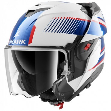 - aree riflettenti sul deflettore del vento, sul cuscinetto del collo, sulla guarnizione della visiera e sugli adesivi del casco per una migliore visibilità durante la guida con la sezione del mento aperta e chiusa