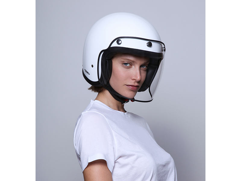 Visiera protettiva, flessibile, piatta e fissa (una volta montata non po’ essere alzata o abbassata).