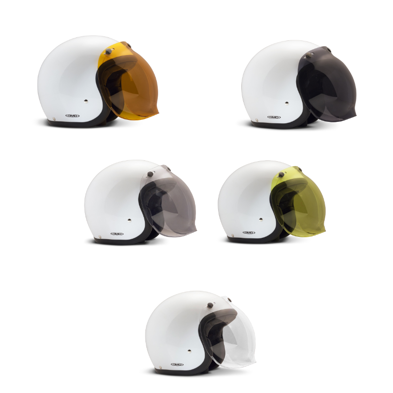 Visiera a bolla con tre bottoni da applicare ai caschi jet. (una volta montata non è possibile alzarla o abbassarla).