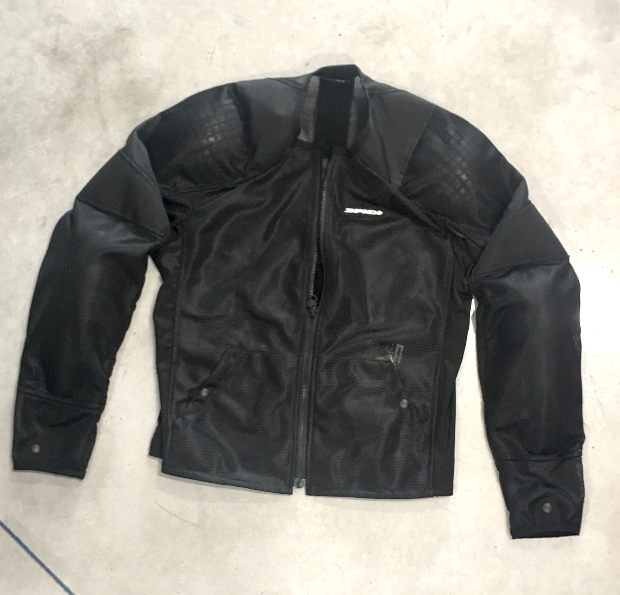 Il tessuto in rete di poliestere è stato progettato per offrire grande elasticità e garantire la massima circolazione d'aria nelle giornate più calde. Sono presenti 2 tasche esterne chiuse da bottoni e 2 tasche interne particolarmente capienti. I protettori fissi su spalle (della serie Warrior Lite) e gomiti (della serie Forcetech) sono entrambi certificati secondo EN 1621-1:2012 a livello 1.
